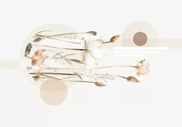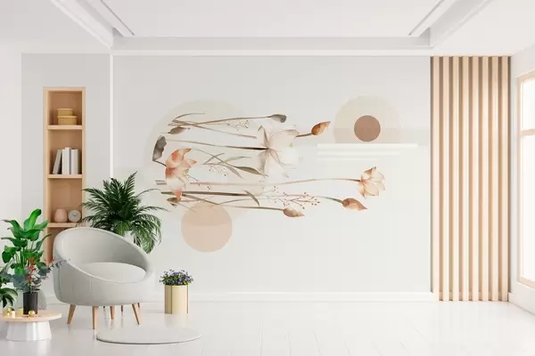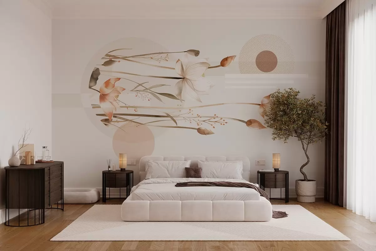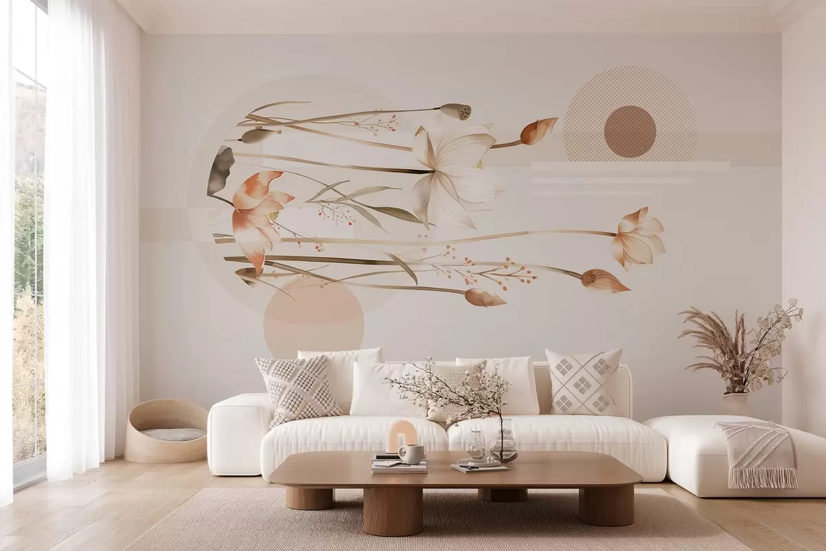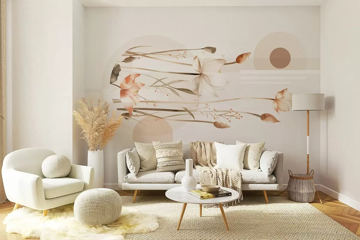 Valokuvatapetti pastellivärisiä liljoja ja boho-geometriaa Nr w03964