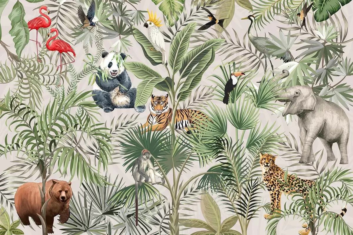 Valokuvatapetti Eläimiä viidakossa Nr w03983