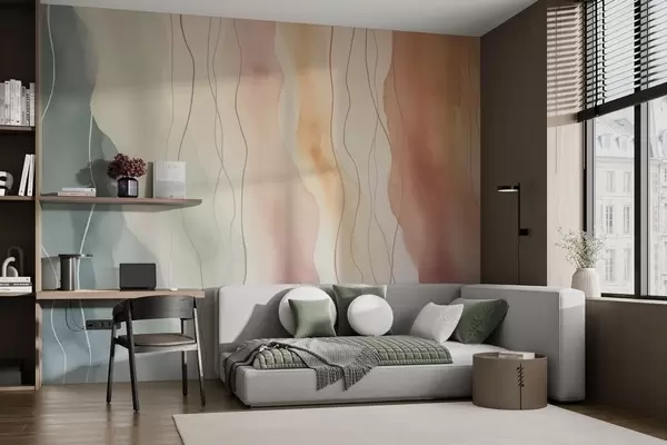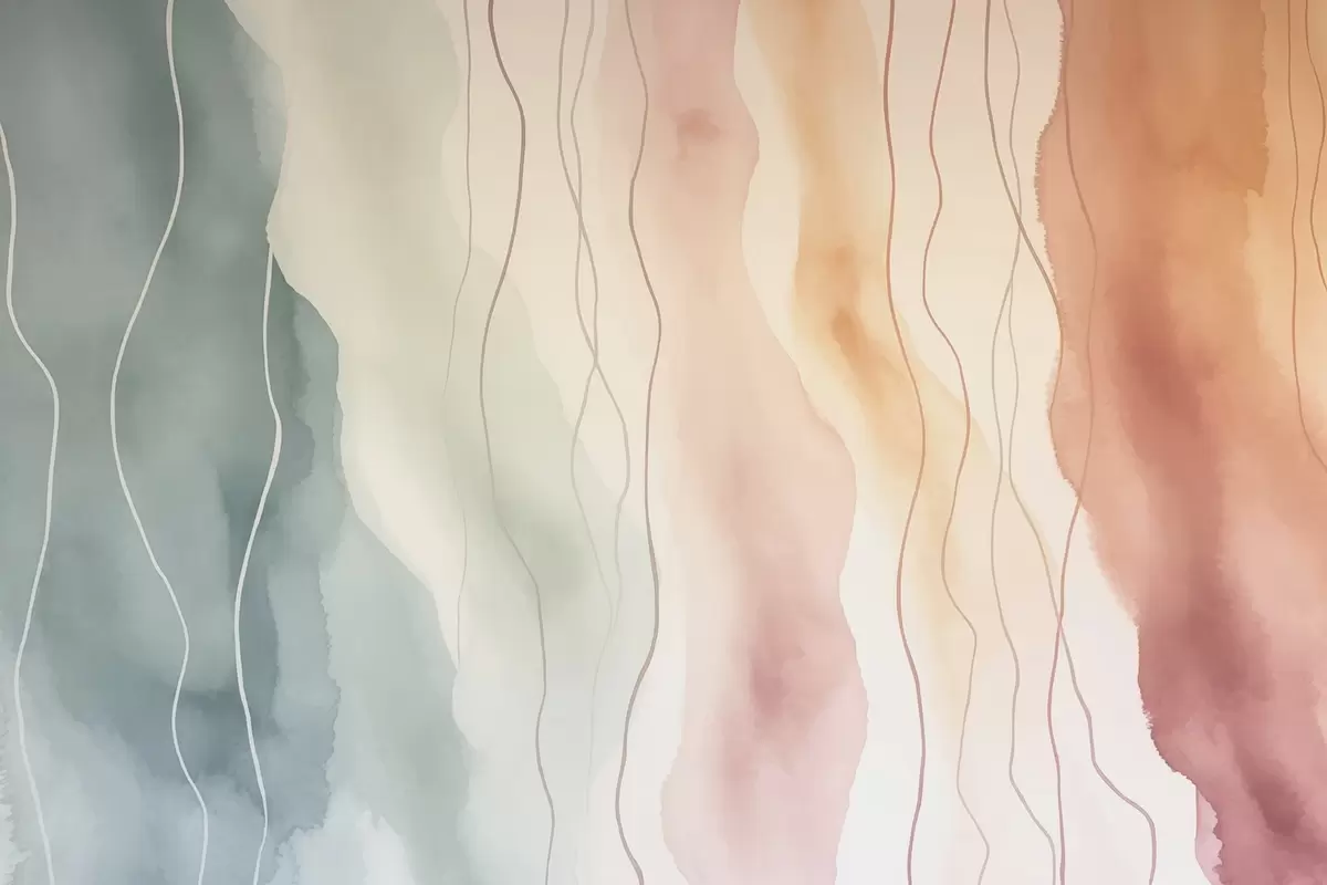 Valokuvatapetti Abstrakti akvarelli aallot lämpimillä ja viileillä väreillä Nr w03989
