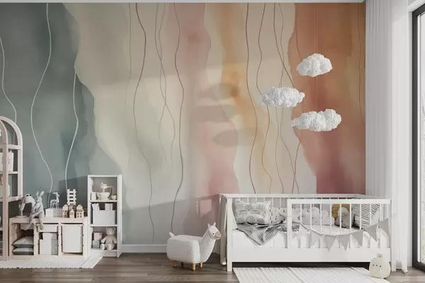 Valokuvatapetti Abstrakti akvarelli aallot lämpimillä ja viileillä väreillä Nr w03989