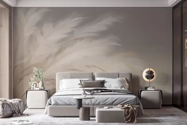 Valokuvatapetti Pehmeät pörröiset ruohot beigen ja harmaan sävyisinä Nr w03992