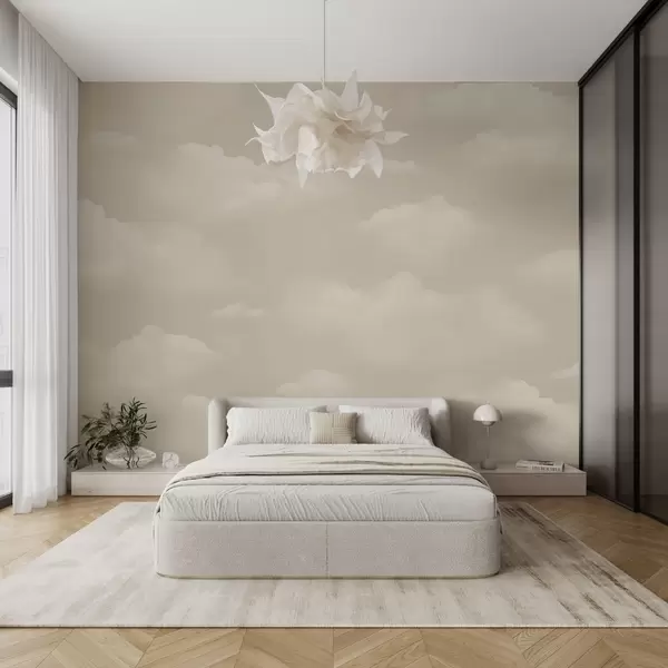 Valokuvatapetti Kermaisia pilviä vaalean beigen värisellä taustalla Nr w03994
