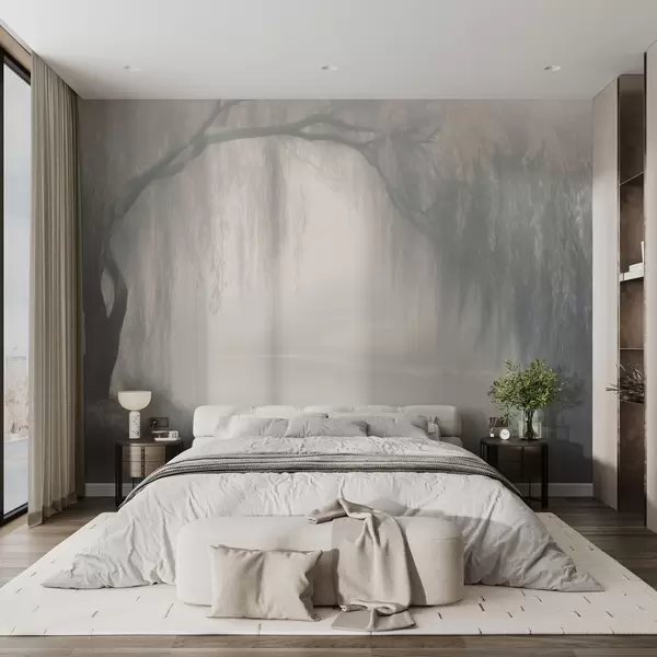 Valokuvatapetti Mystinen pajupenkki aamusumussa w03995