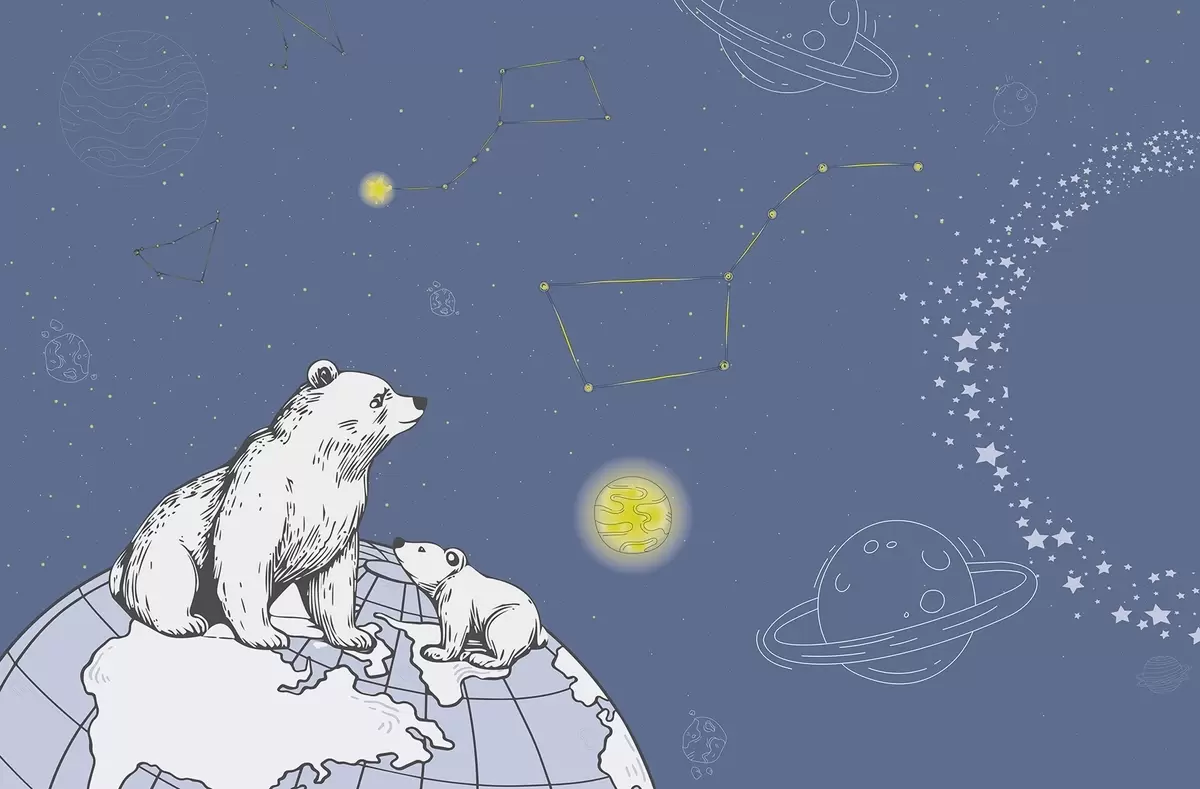 Valokuvatapetti Karhuja ja tähtiä sinisellä taustalla, yöastronomia Nr w04002v1