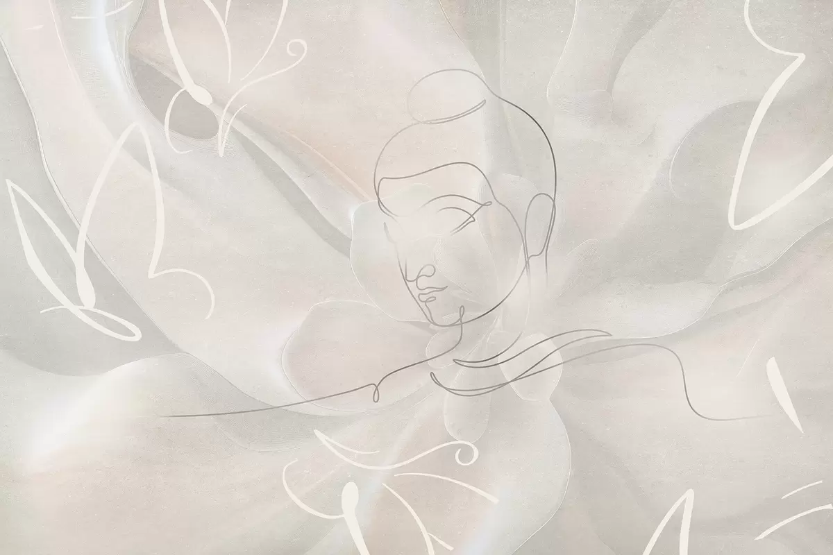 Valokuvatapetti Floral abstraktio Buddha viiva piirustus, beige värit Nr w04004