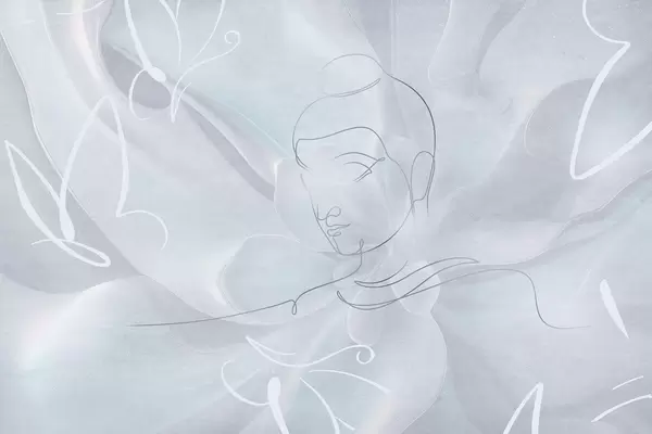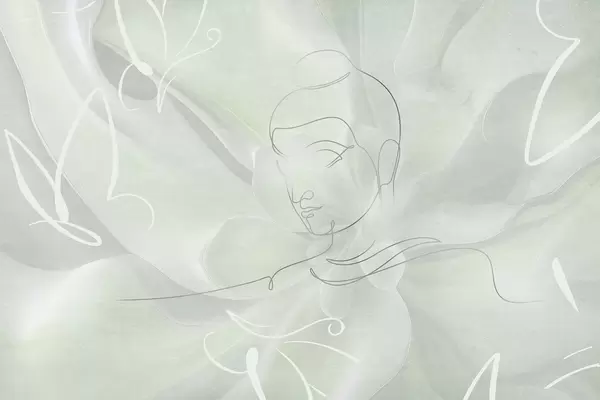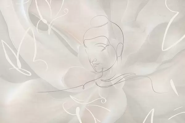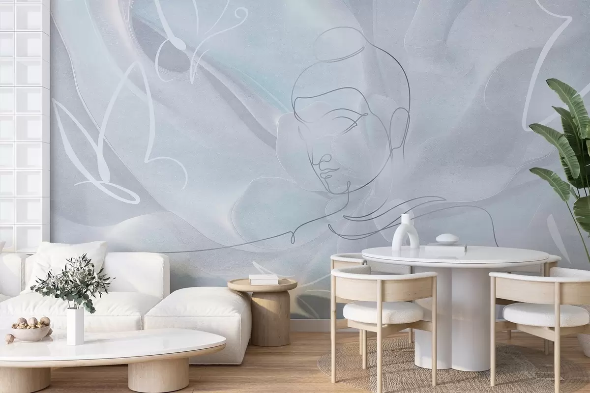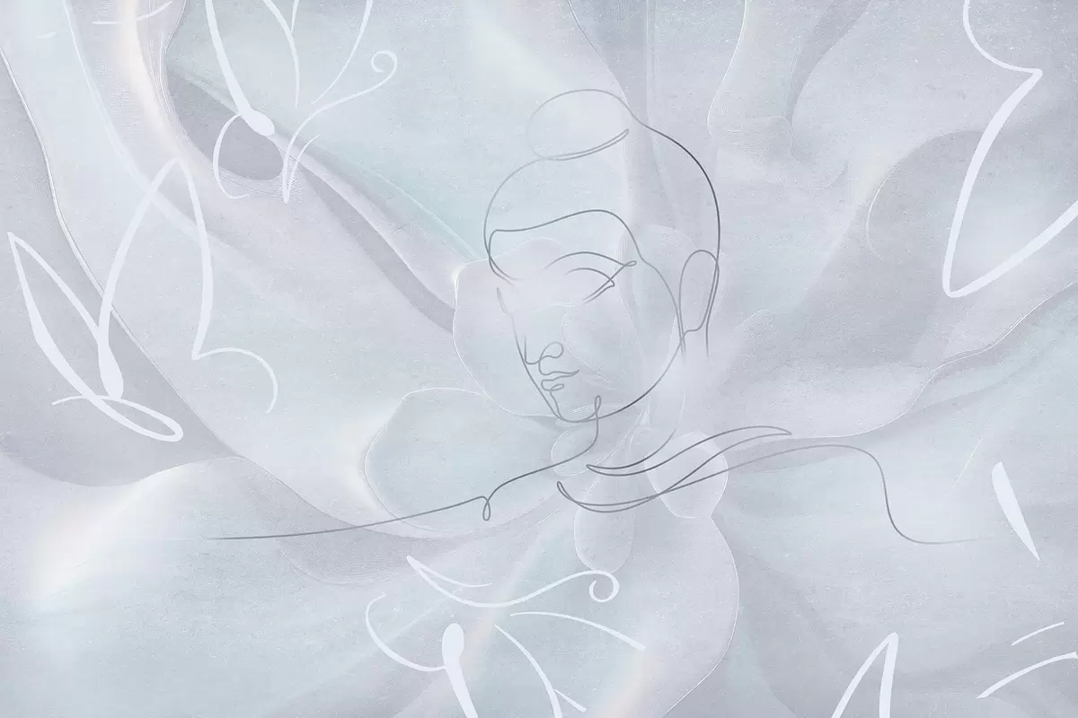 Valokuvatapetti Floral abstraktio Buddha viiva piirustus, siniset värit Nr w04004v1