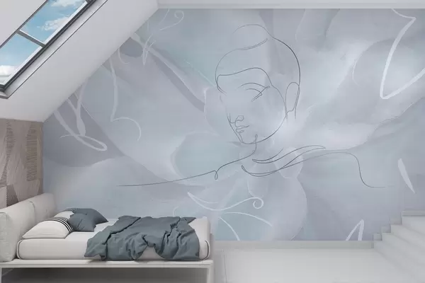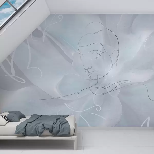 Valokuvatapetti Floral abstraktio Buddha viiva piirustus, siniset värit Nr w04004v1