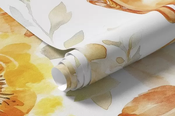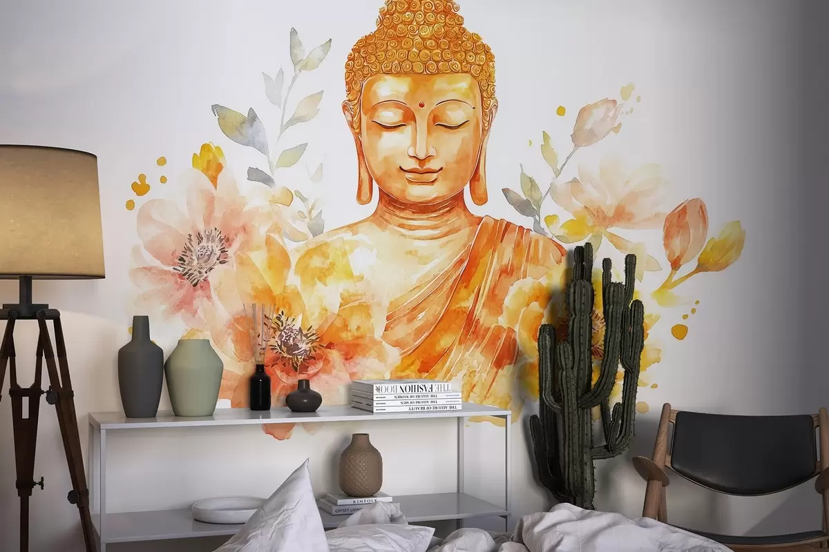 Valokuvatapetti Akvarelli Buddha kukkia, hengellinen, oranssi väripaletti Nr w04005