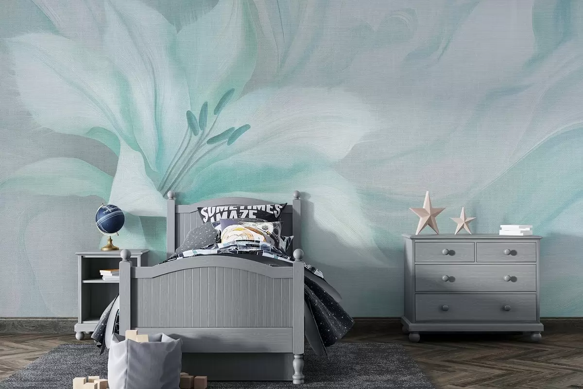 Valokuvatapetti Lilja kukka nestemäinen abstraktio, kukka, akvamariini värit Nr w04006v3