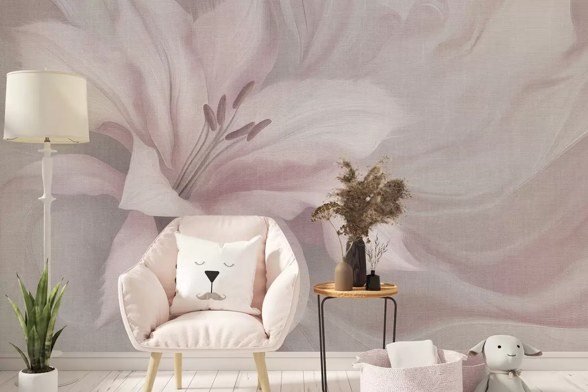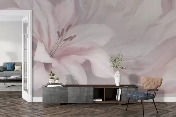 Valokuvatapetti Lily kukka nesteen abstraktio, kukka, vaaleanpunainen ja beige värit Nr w04006v4