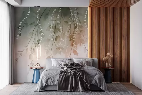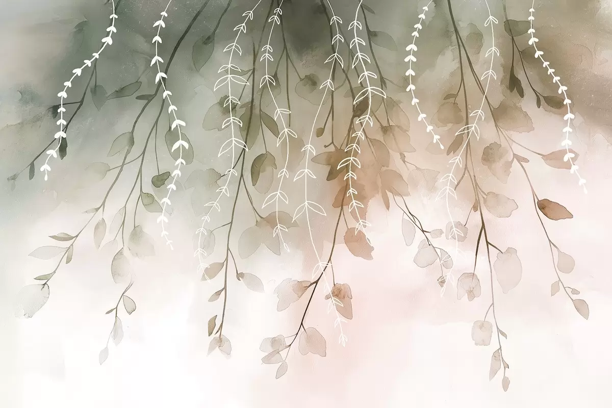 Valokuvatapetti Oksat ja lehdet vesivärityyliin, luonnolliset syksyn värit Nr w04007v1