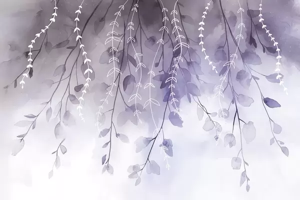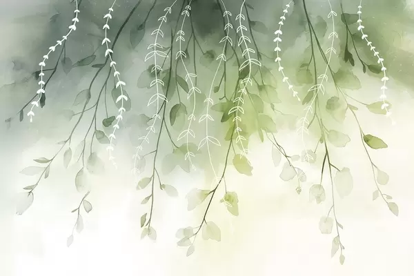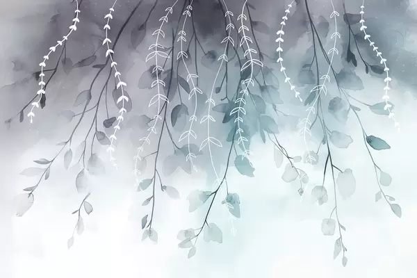 Valokuvatapetti Oksat ja lehdet vesivärityyliin, luonnon akvamariinin värit Nr w04007v3
