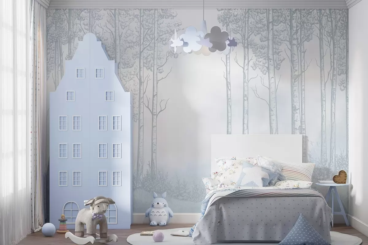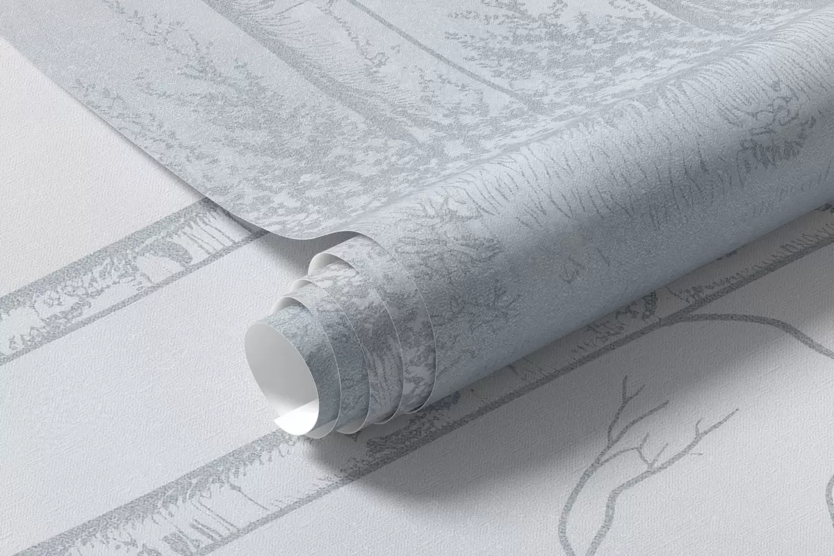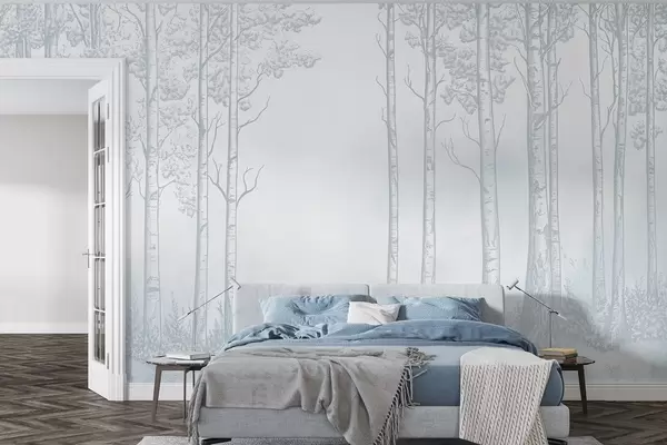 Valokuvatapetti Metsä koivuineen, minimalismi, luonto, sininen väripaletti Nr w04009