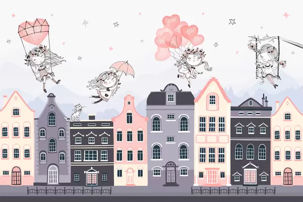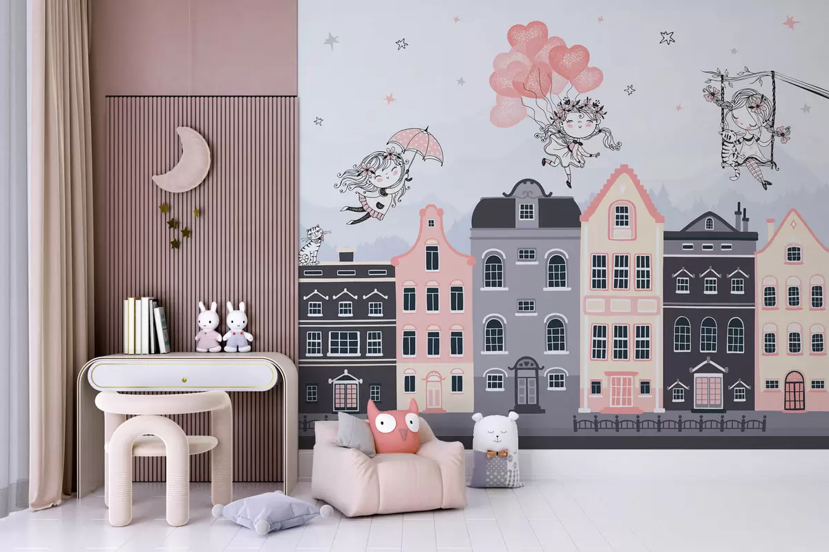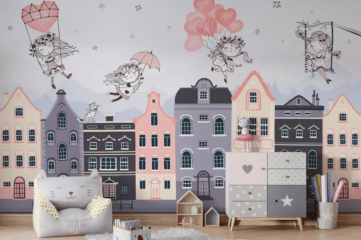 Valokuvatapetti Kaupunkikuva söpöjä tyttöjä Nr w04014