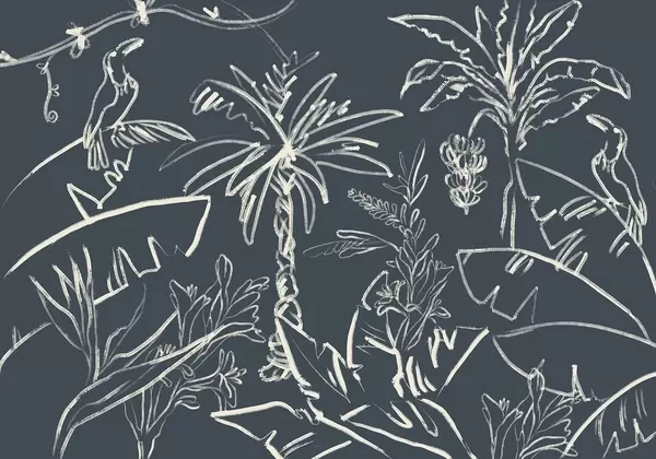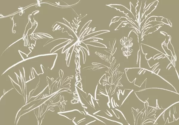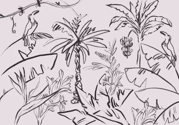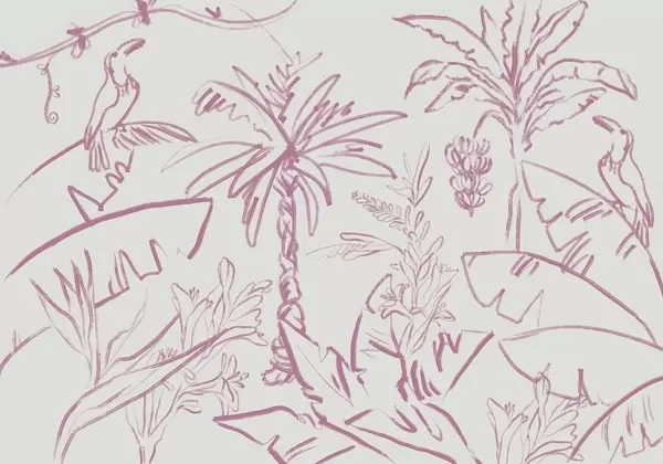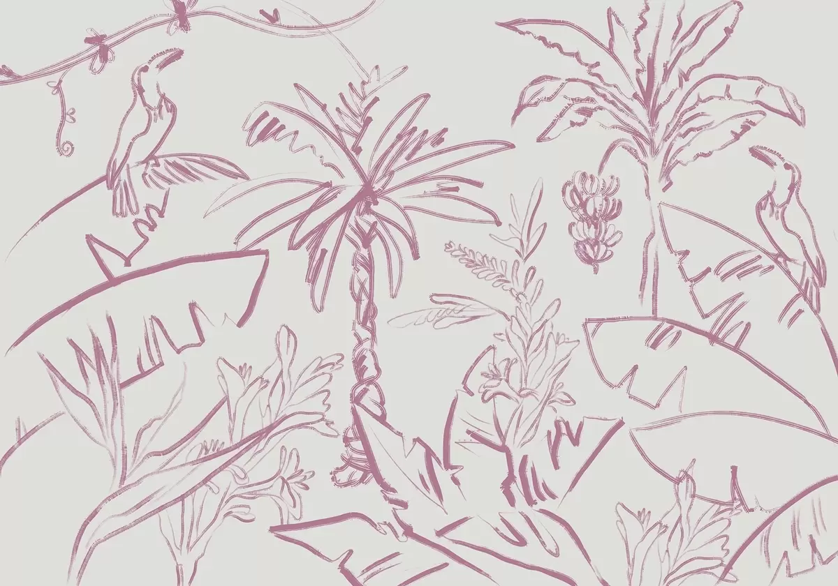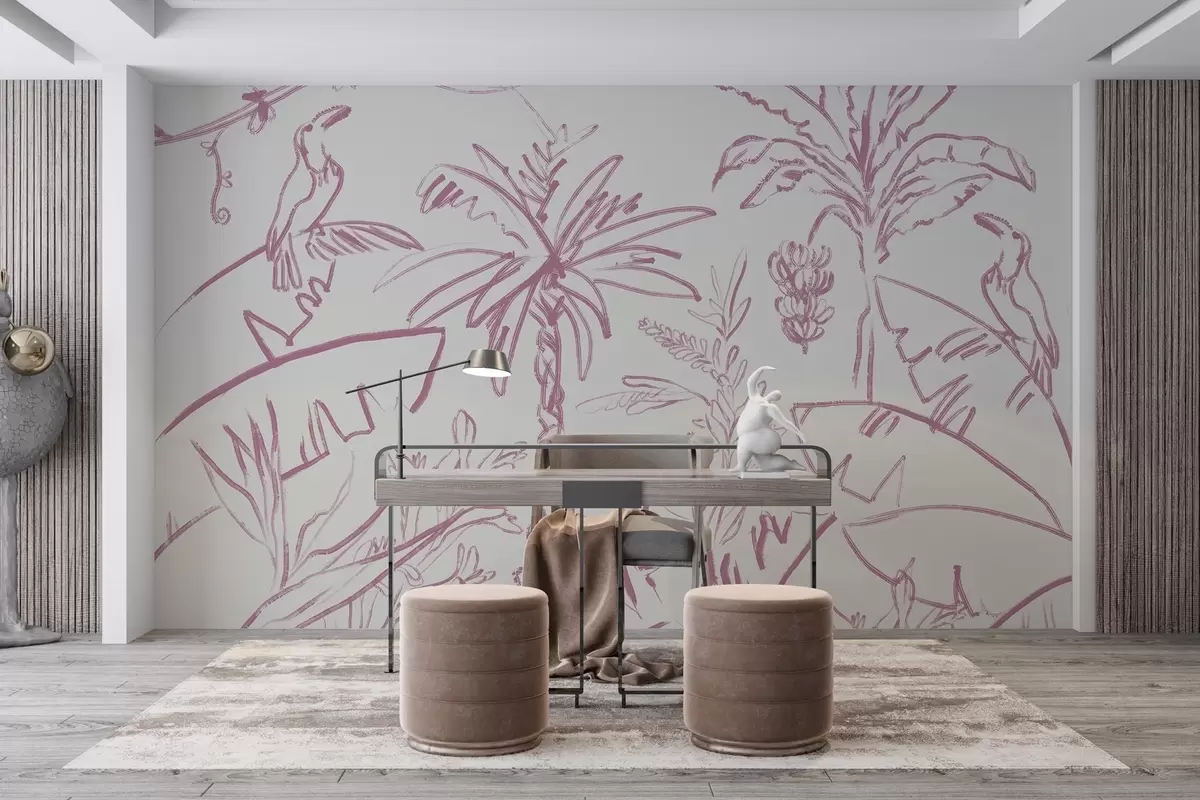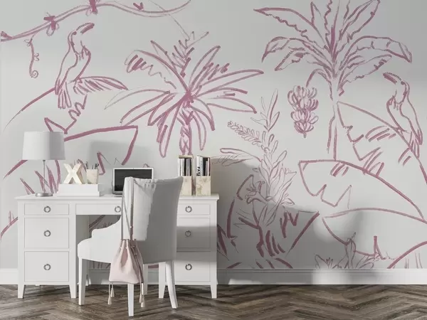 Valokuvatapetti Trooppisia linjoja vaaleanpunaisella, trooppisia kasveja, banaanit Nr w04020v2
