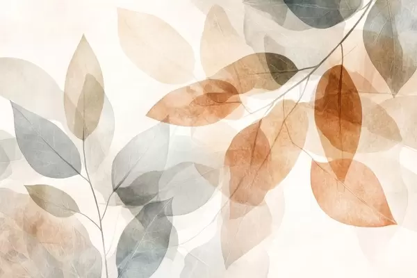 Valokuvatapetti vesivärityylisiä lehtiä seepian ja harmaan sävyissä Nr w04024