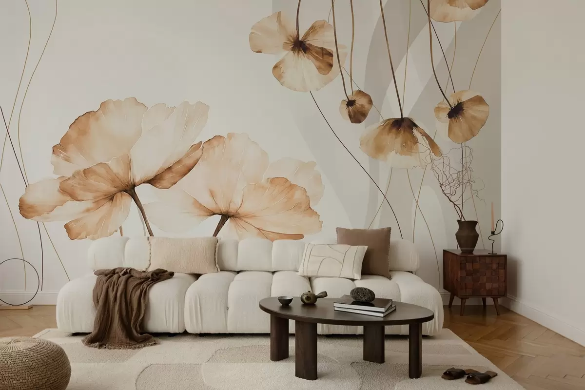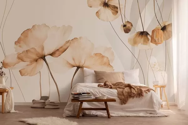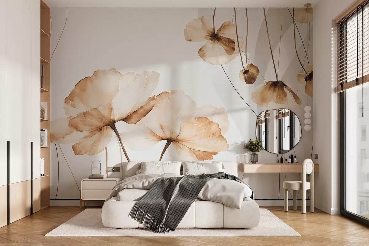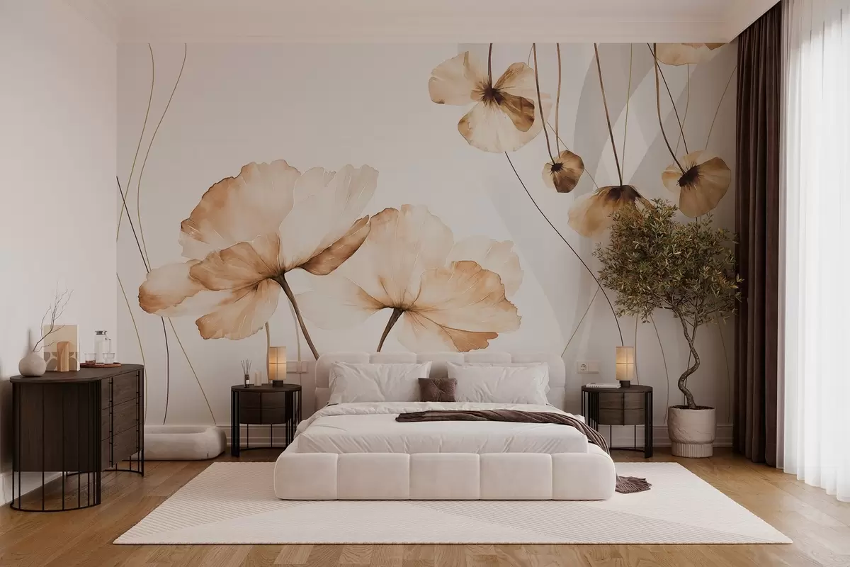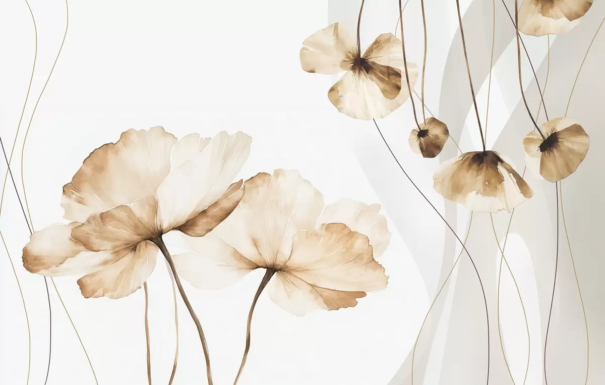Valokuvatapetti akvarelli-tyylisiä kukkia ruskean sävyillä Nr w04026