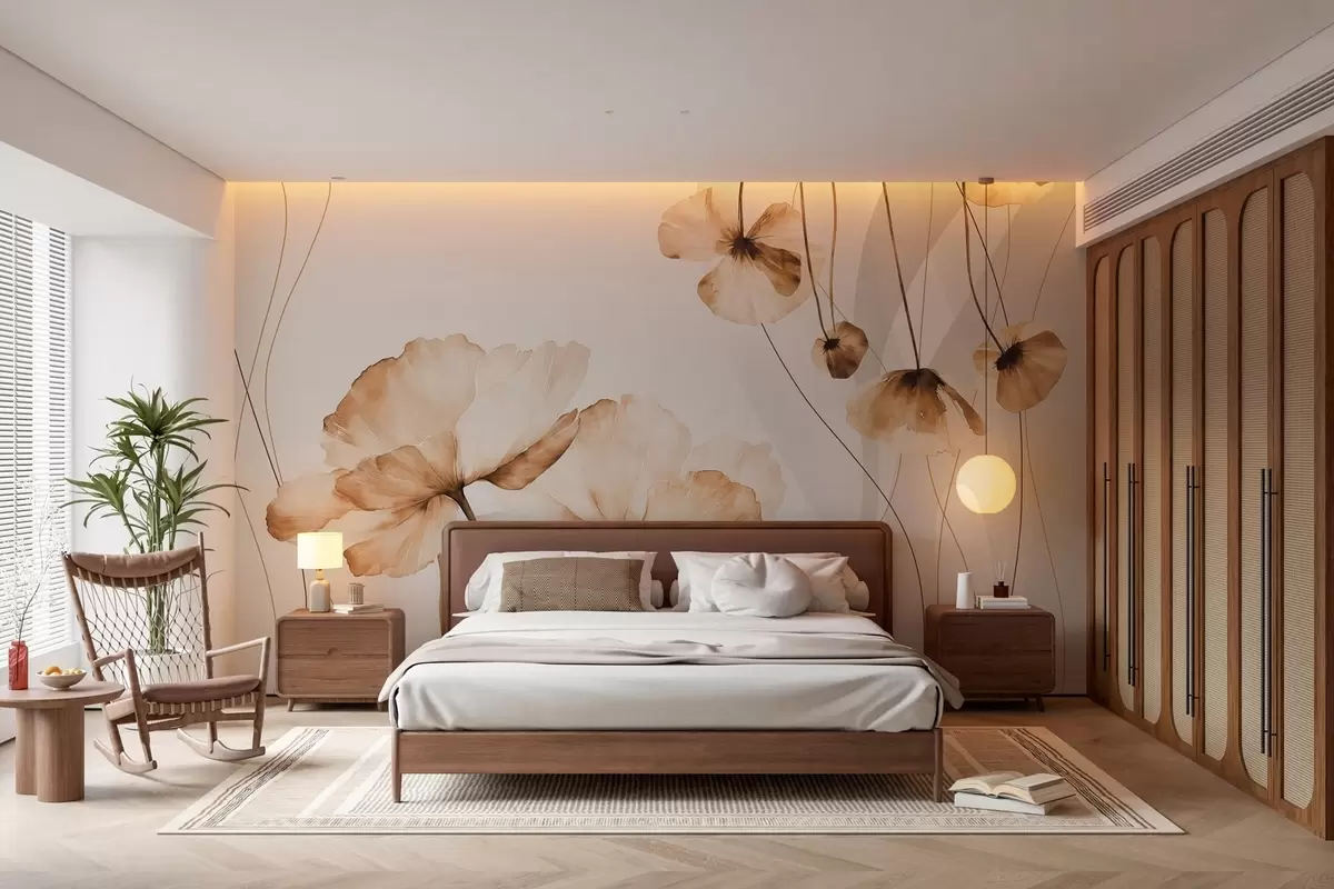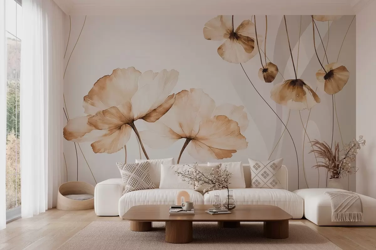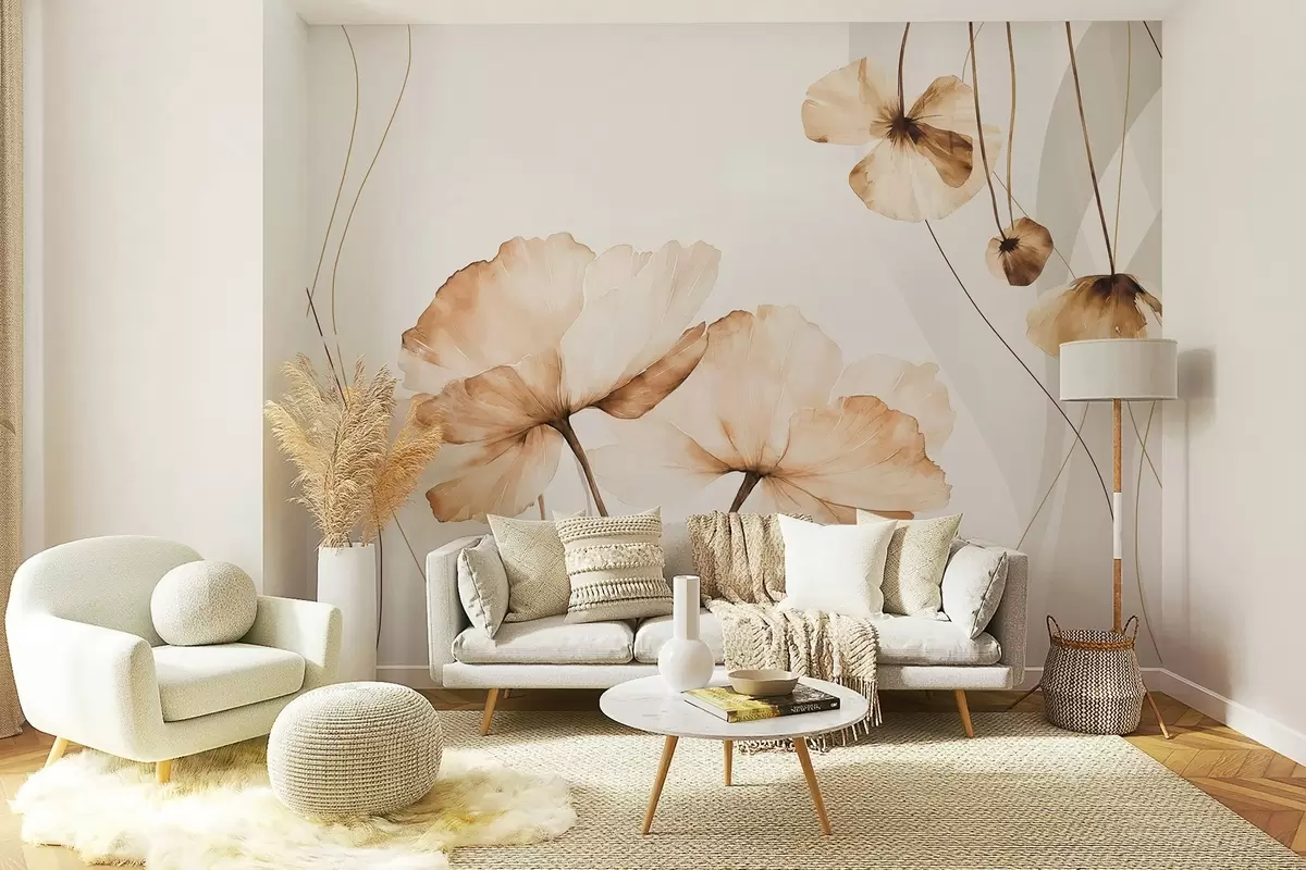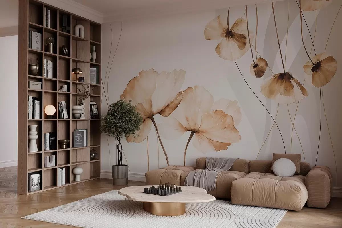 Valokuvatapetti akvarelli-tyylisiä kukkia ruskean sävyillä Nr w04026