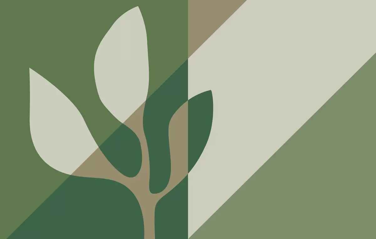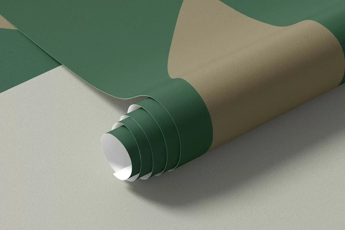 Valokuvatapetti abstrakti graafinen kasvi taustalla geometriaa vihreä ja okra värejä Nr w04028
