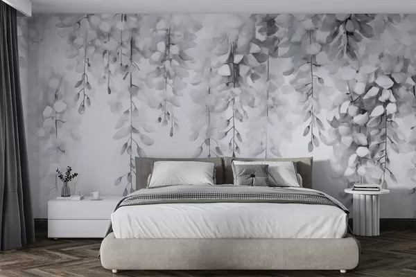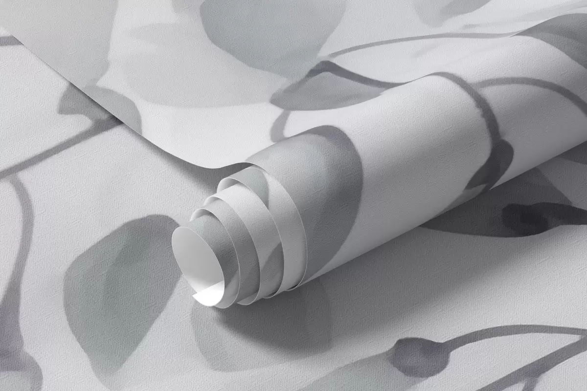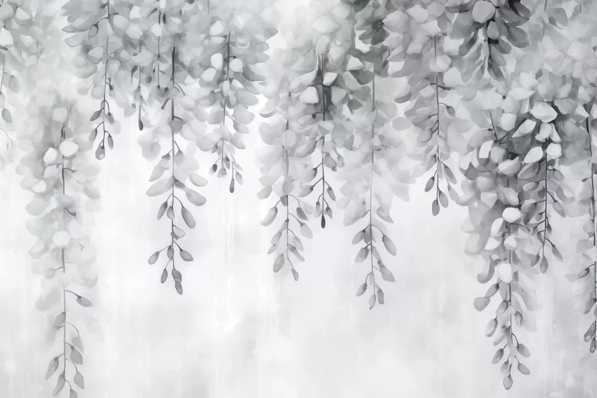 Valokuvatapetti Yksivärinen akvarelli, jossa on hopean ja valkoisen viileitä sävyjä, jotka tuovat mieleen hiljaisuuden ja talven pehmeyden Nr w04034v1