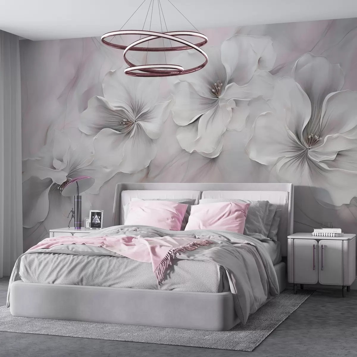 Valokuvatapetti Öljymaalaus kukkia vaaleanpunainen tausta Nr w04047v1