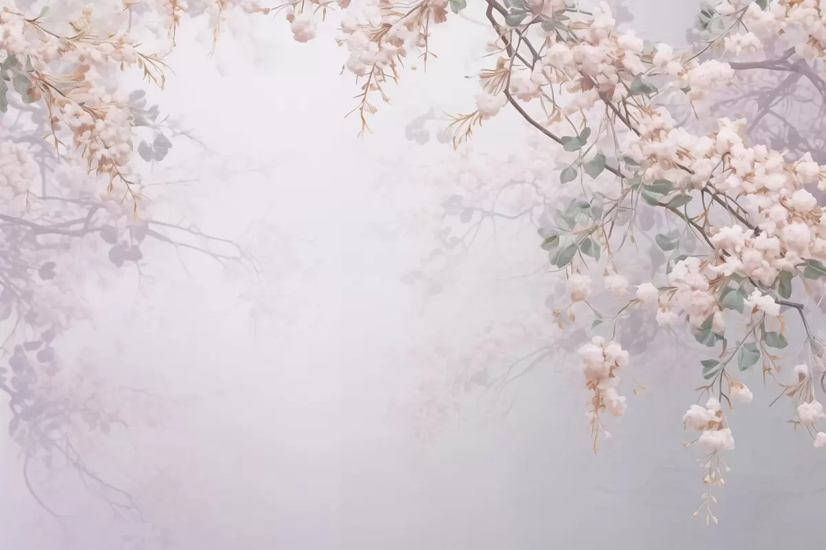 Valokuvatapetti Kukkivan puun oksat sumussa Nr w04062