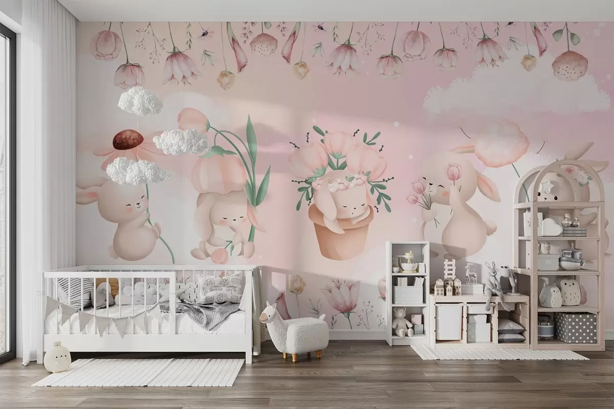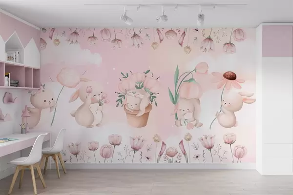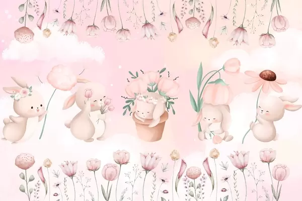 Valokuvatapetti Pupuja kukissa Nr w04063