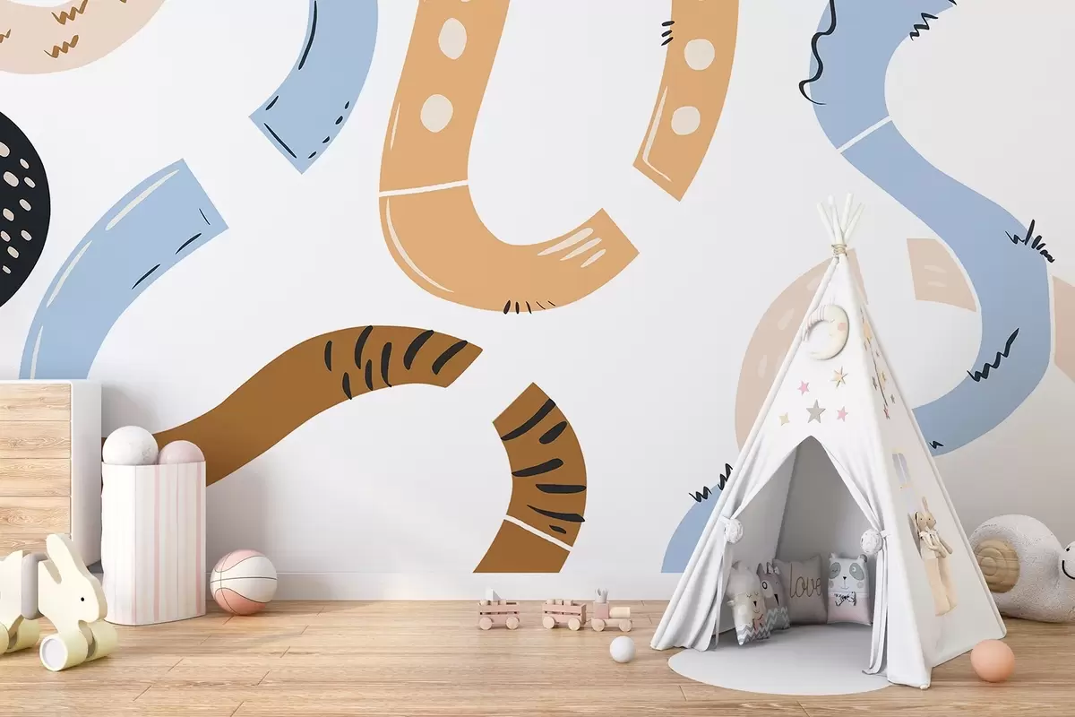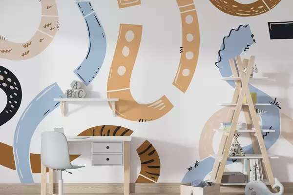 Valokuvatapetti Abstrakteja piirustuksia, nuoret, doodles, ruskea, sininen, vaaleanpunainen Nr w04066