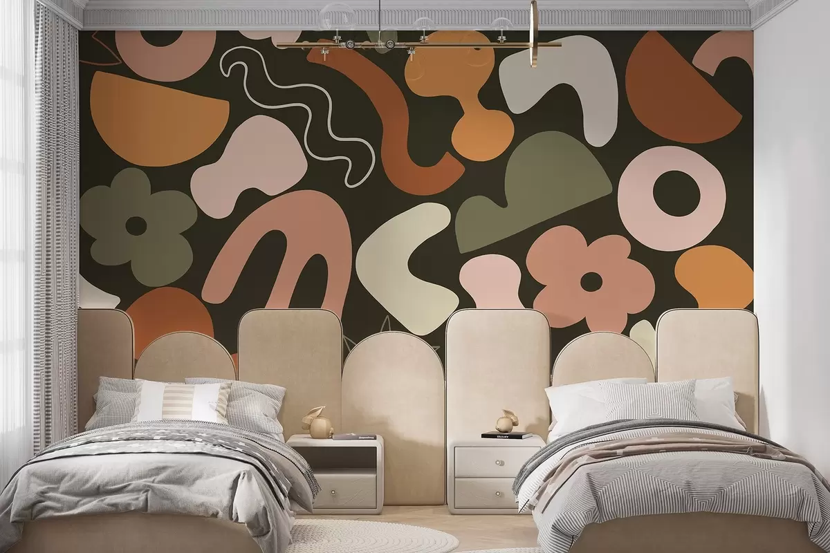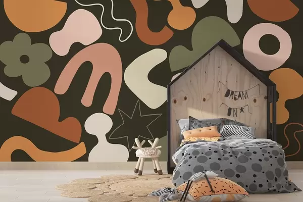 Valokuvatapetti Geometriset hahmot, nuoriso, abstraktio, tummanvihreä tausta Nr w04067v2