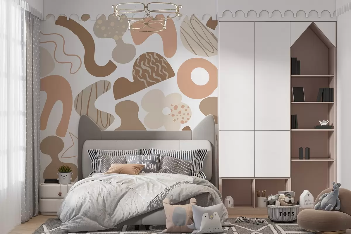 Valokuvatapetti Geometriset hahmot, joissa on doodles piirustus, nuorekas, beige väripaletti Nr w04068