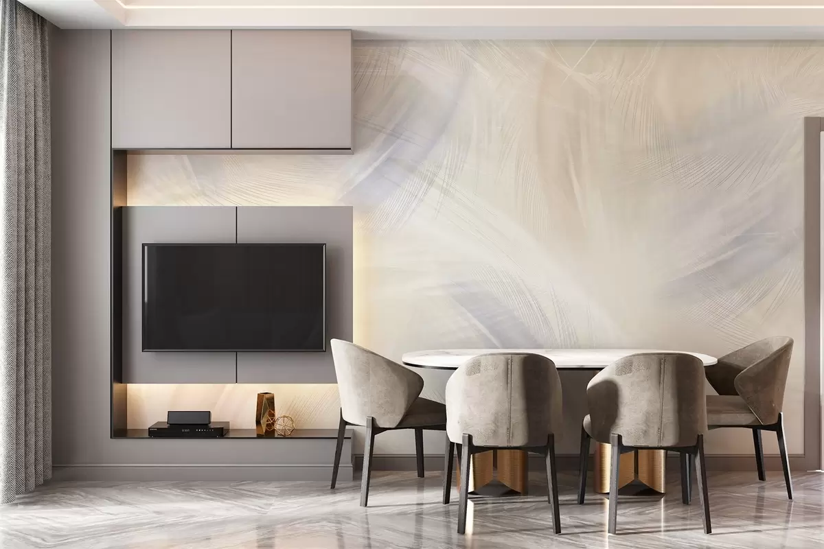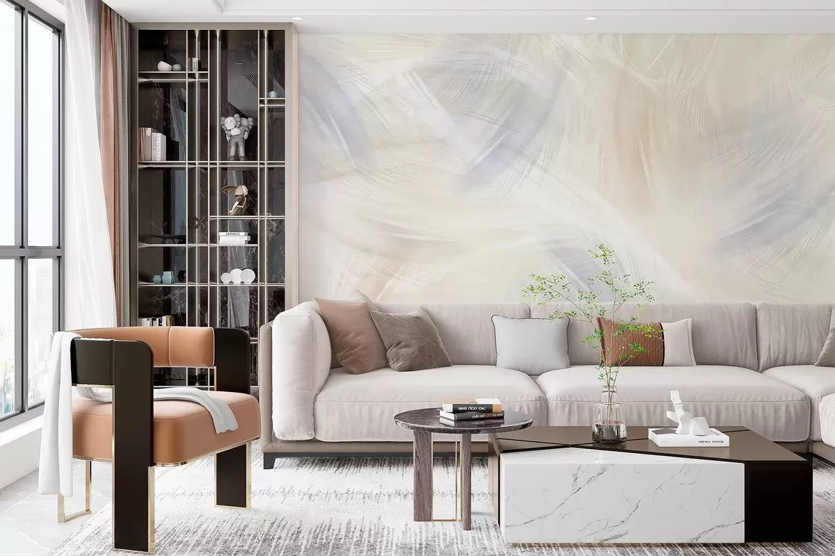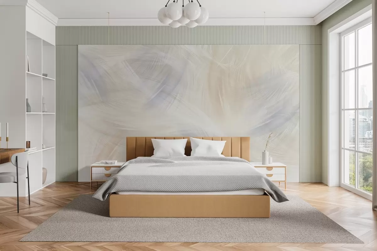 Valokuvatapetti ilmavia höyheniä sinisen ja beigen sävyissä Nr w04071v2