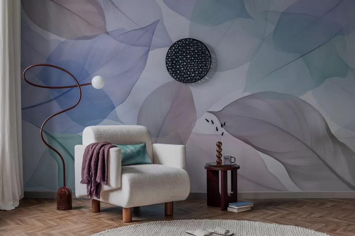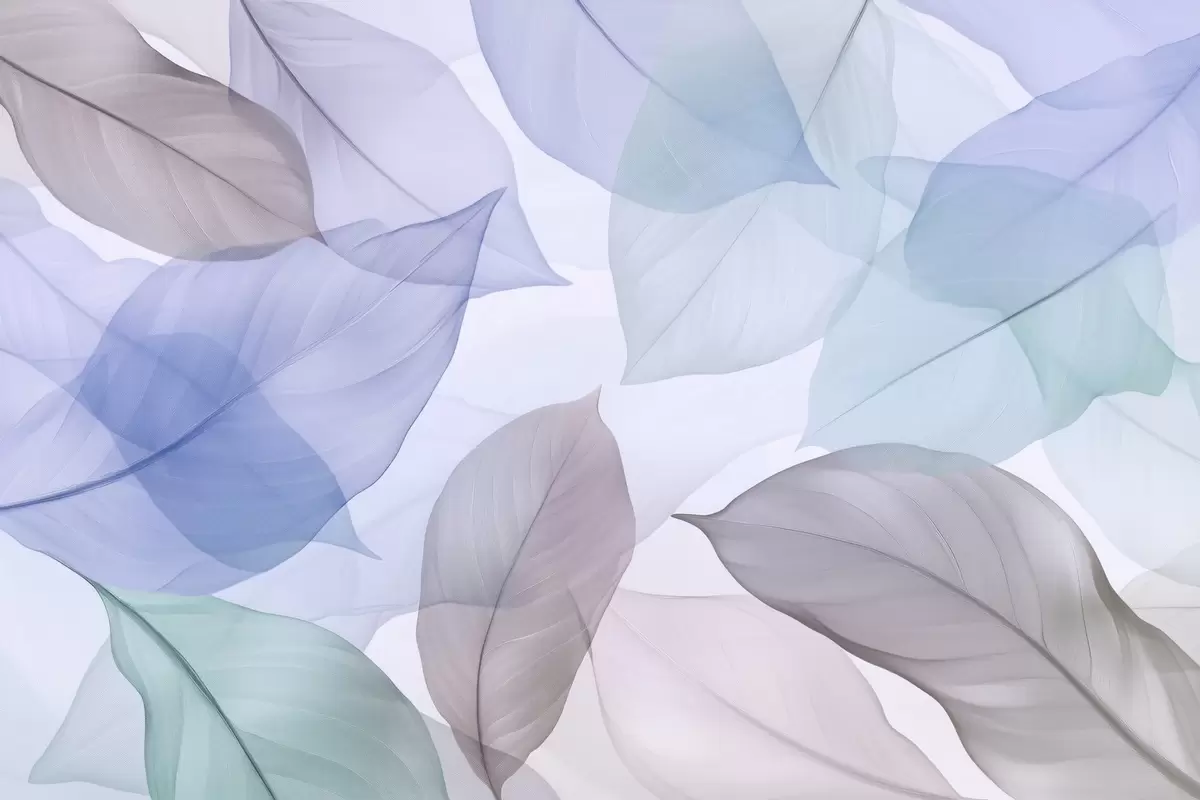 Valokuvatapetti Läpikuultavat lehdet, joiden suonet ovat sinisen ja ruskean sävyisiä Nr w04075