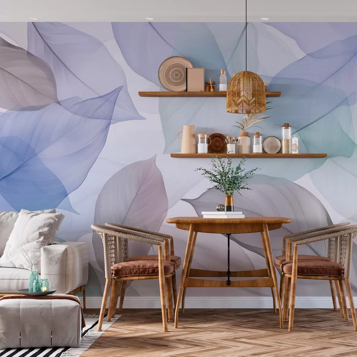 Valokuvatapetti Läpikuultavat lehdet, joiden suonet ovat sinisen ja ruskean sävyisiä Nr w04075