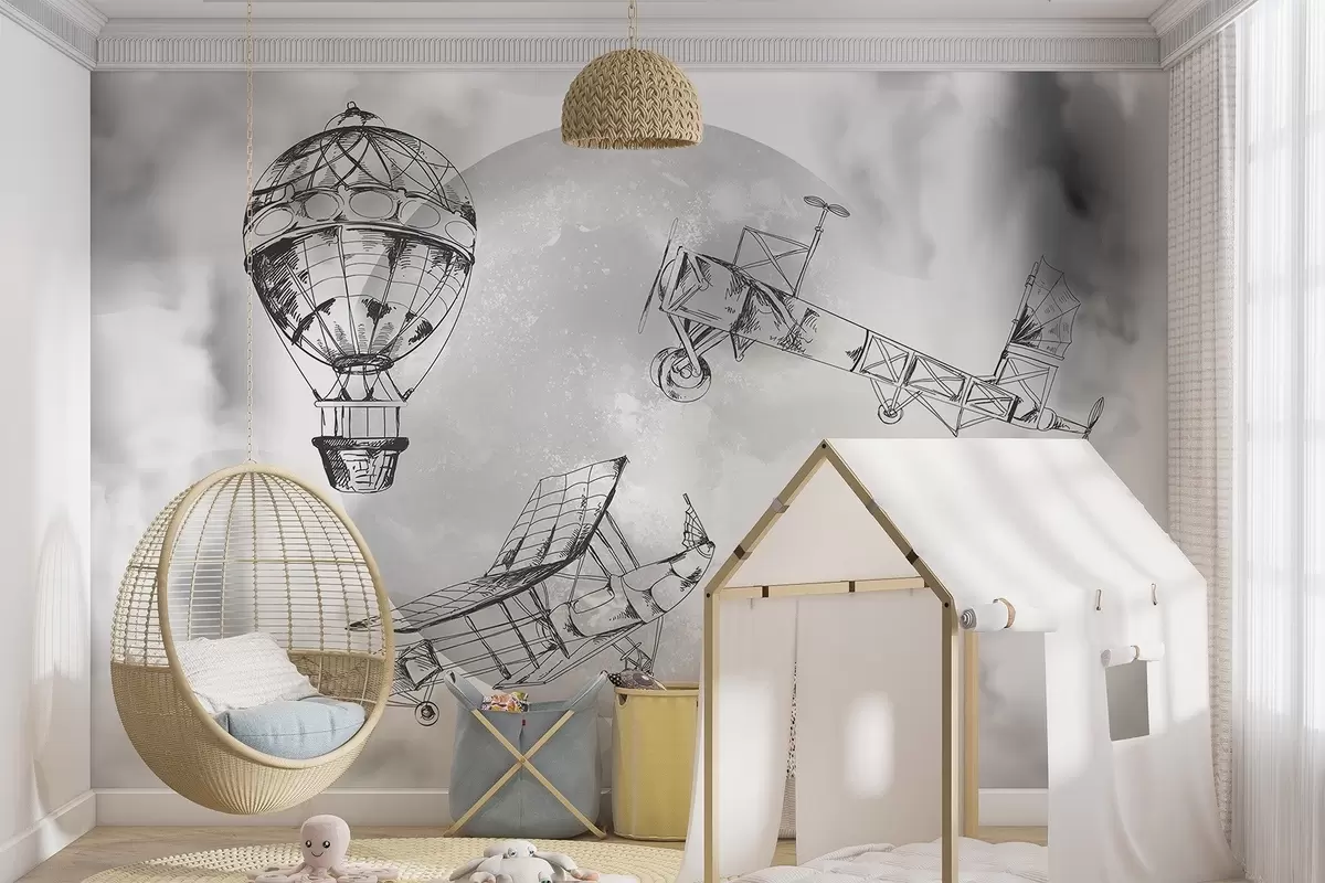 Valokuvatapetti Retrolentokoneet kuun ja pilvien taustaa vasten Nr w04085