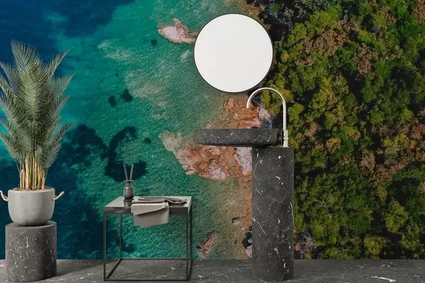 Valokuvatapetti Espanja meren rannikolla aqumarine vesi, mäntymetsä, ilma valokuvaus Nr w04099