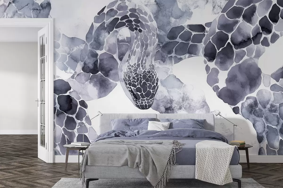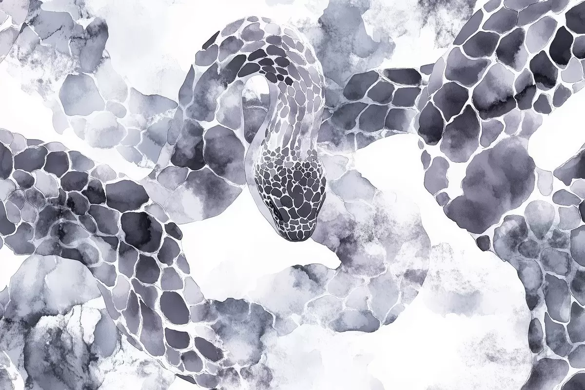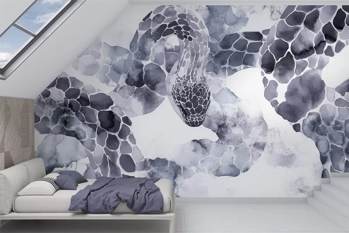 Valokuvatapetti Käärmeen siluetti, vesivärityyli, siniset värit Nr w04113