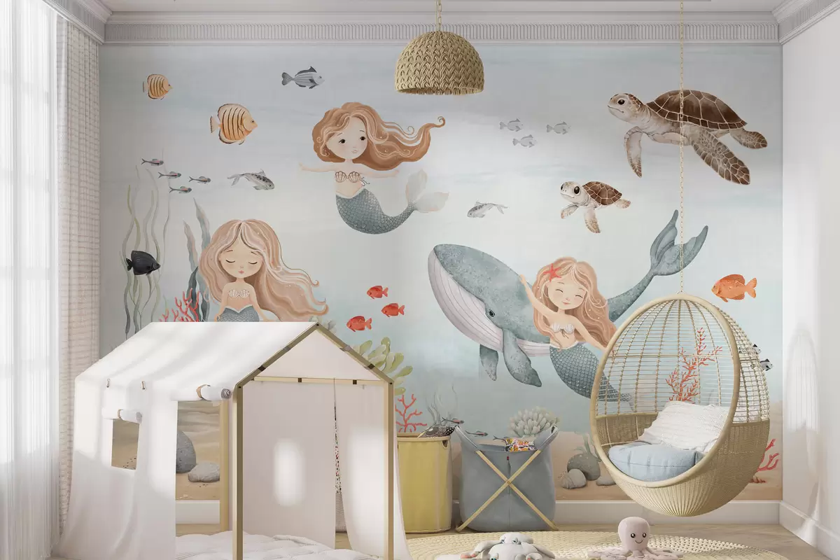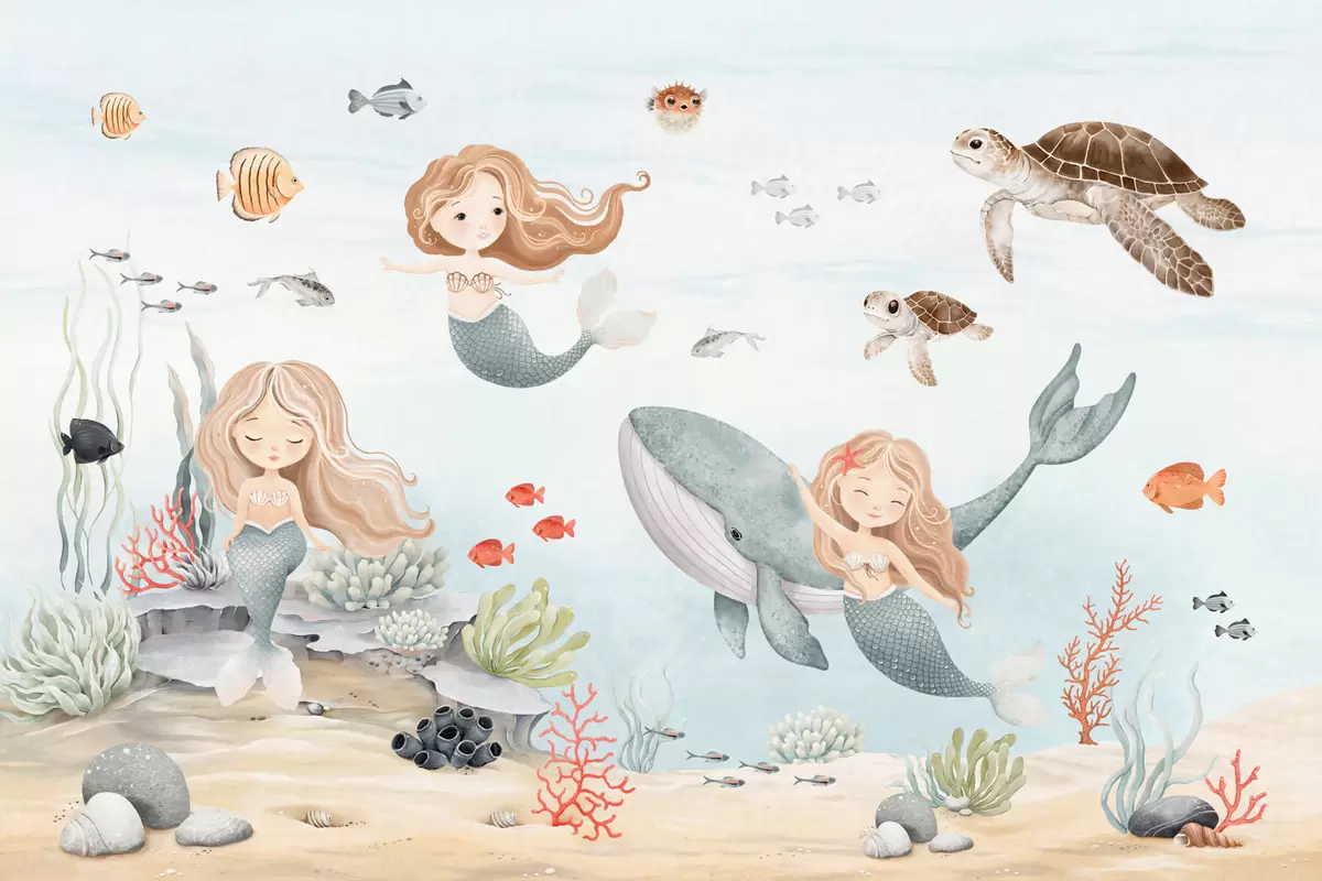 Valokuvatapetti Vedenalainen maailma merenneitojen ja kalojen kanssa Nr w04166