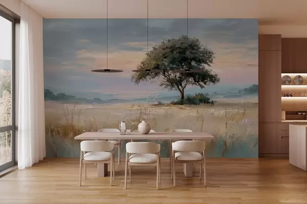 Valokuvatapetti puu keskellä peltoa öljyvärimaalauksen tyyliin Nr w04206