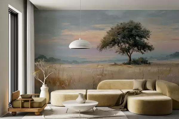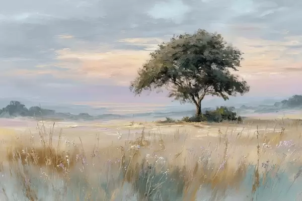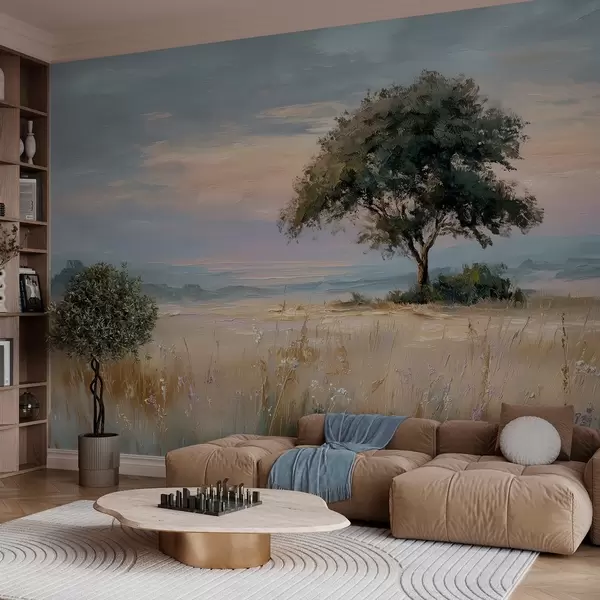 Valokuvatapetti puu keskellä peltoa öljyvärimaalauksen tyyliin Nr w04206