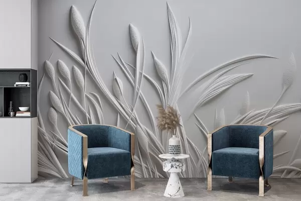 Valokuvatapetti Bas-reliefi, jossa on herkkiä lehtiä ja pampasvilloja Nr w04247