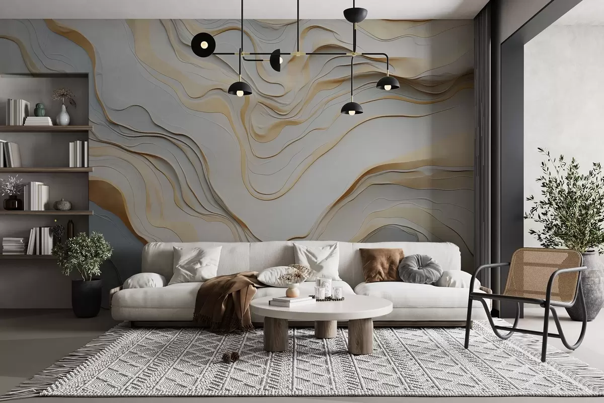 Valokuvatapetti kerrokset, aallot, abstraktio, beige, harmaa, sileys, moderni, moderni w04255