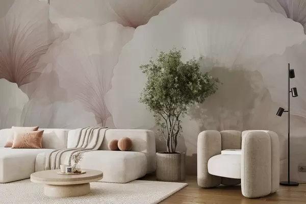 Valokuvatapetti kukat, terälehdet, kerma, harmaa, pehmeys, rauhallisuus, rauhallinen Nr w04256v1