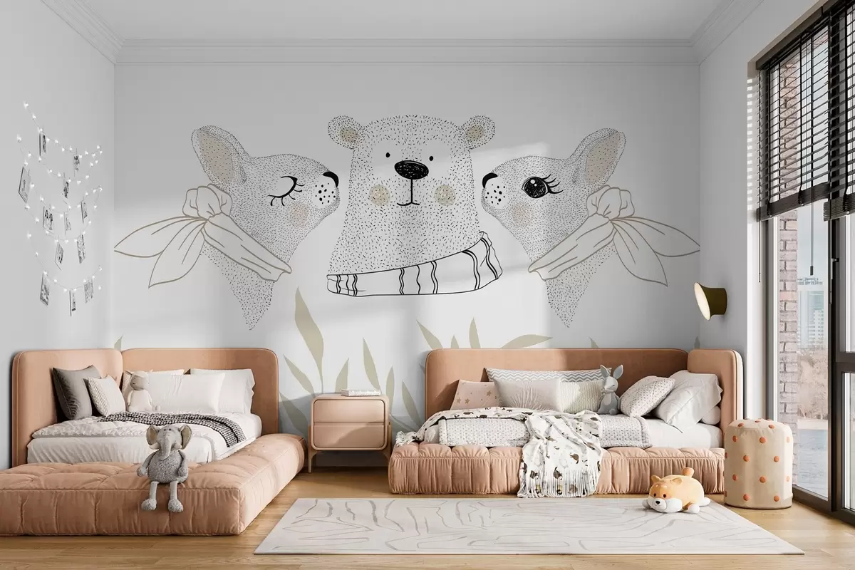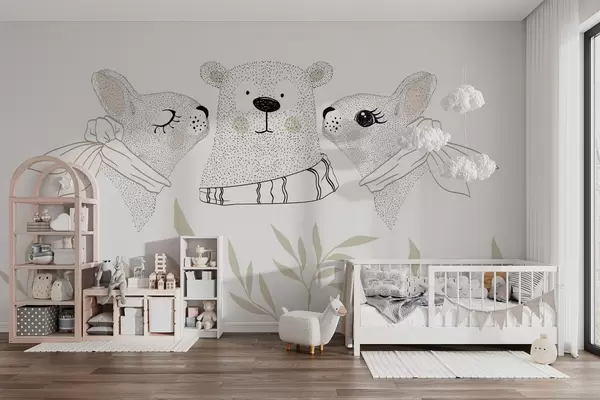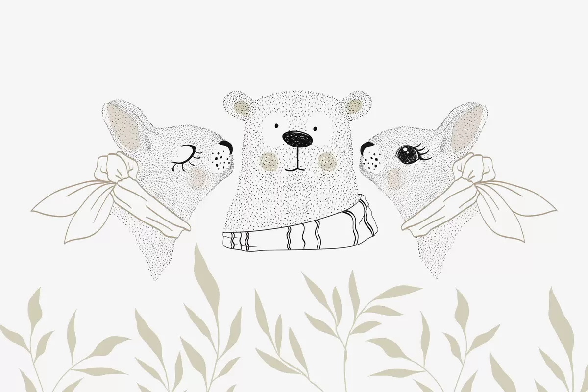Valokuvatapetti Hauskoja eläimiä, jäniksiä ja karhunpoikanen Nr w04269v1