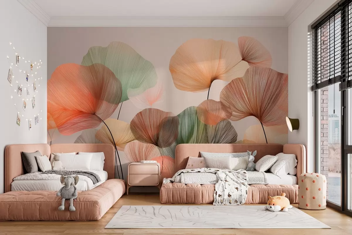 Valokuvatapetti moniväriset ginkgo-lehdet suonineen Nr w04305