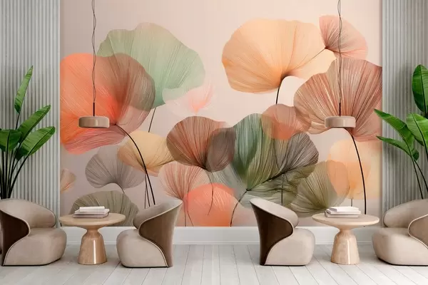 Valokuvatapetti moniväriset ginkgo-lehdet suonineen Nr w04305