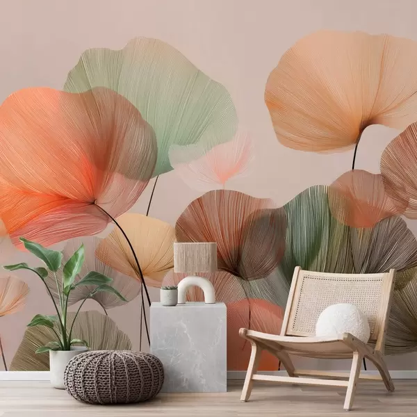 Valokuvatapetti moniväriset ginkgo-lehdet suonineen Nr w04305