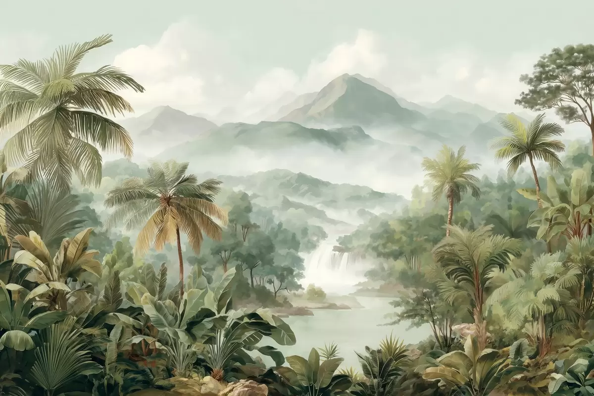 Valokuvatapetti trooppinen viidakko vesiputouksella Nr w04306