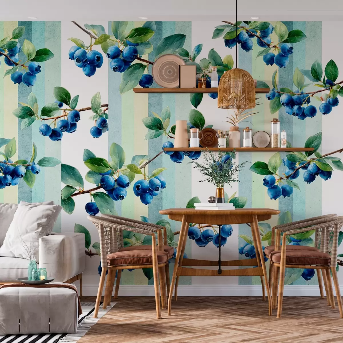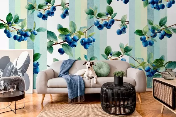 Valokuvatapetti mustikkarypäleitä raidallisella pohjalla Nr w04307