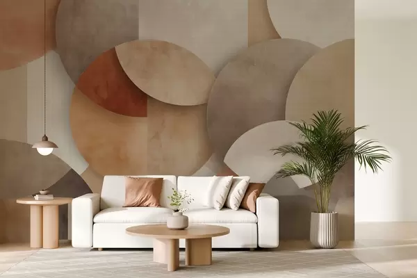 Valokuvatapetti kuvioitu abstrakti geometria lämpimissä ruskean ja okran sävyissä Nr w04310