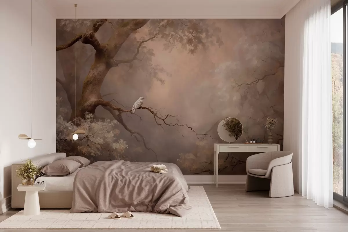 Valokuvatapetti mystinen metsä ja valkoinen lintu Nr w04314